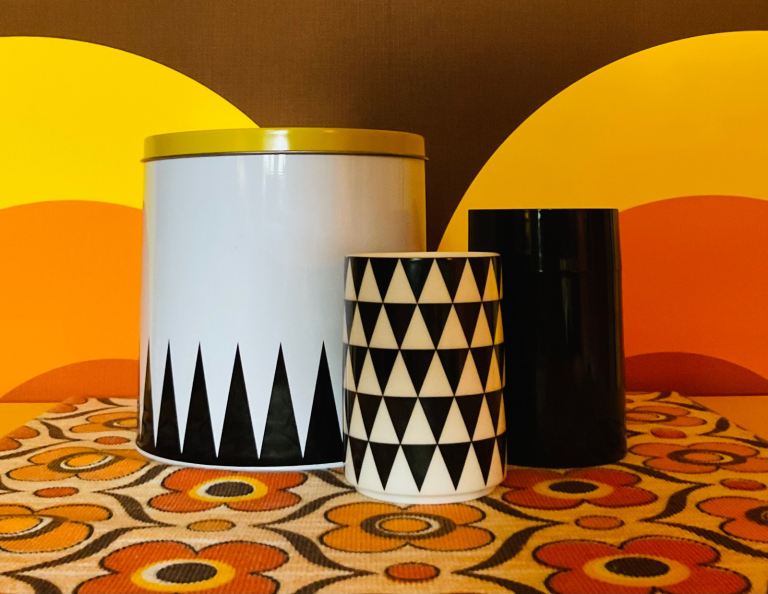 Set of 3 Storage Tins Containers Jars Tubs Canisters Ferm Living Black White Yellow Triangles