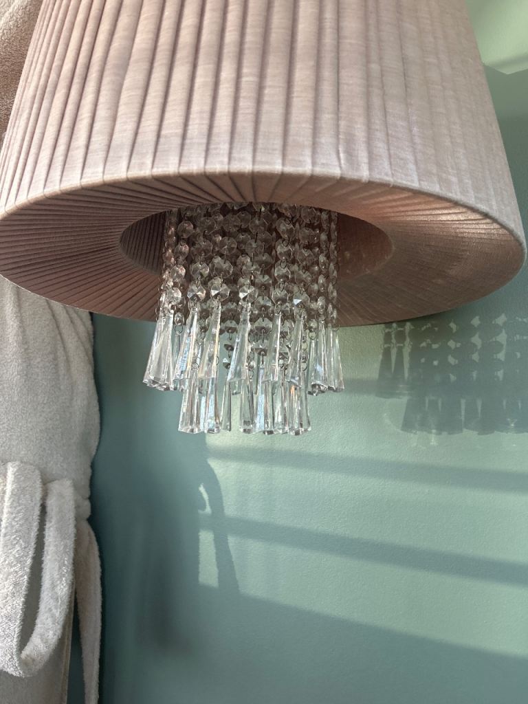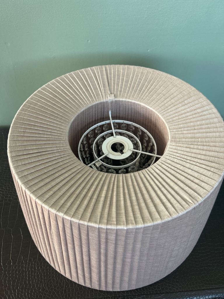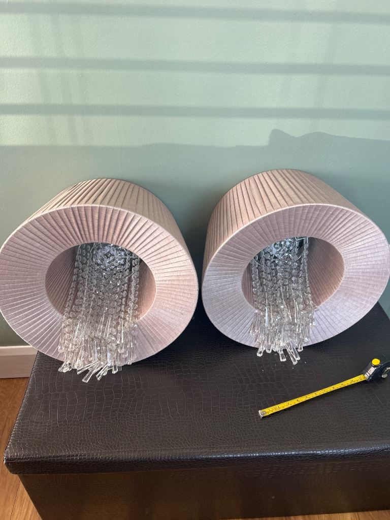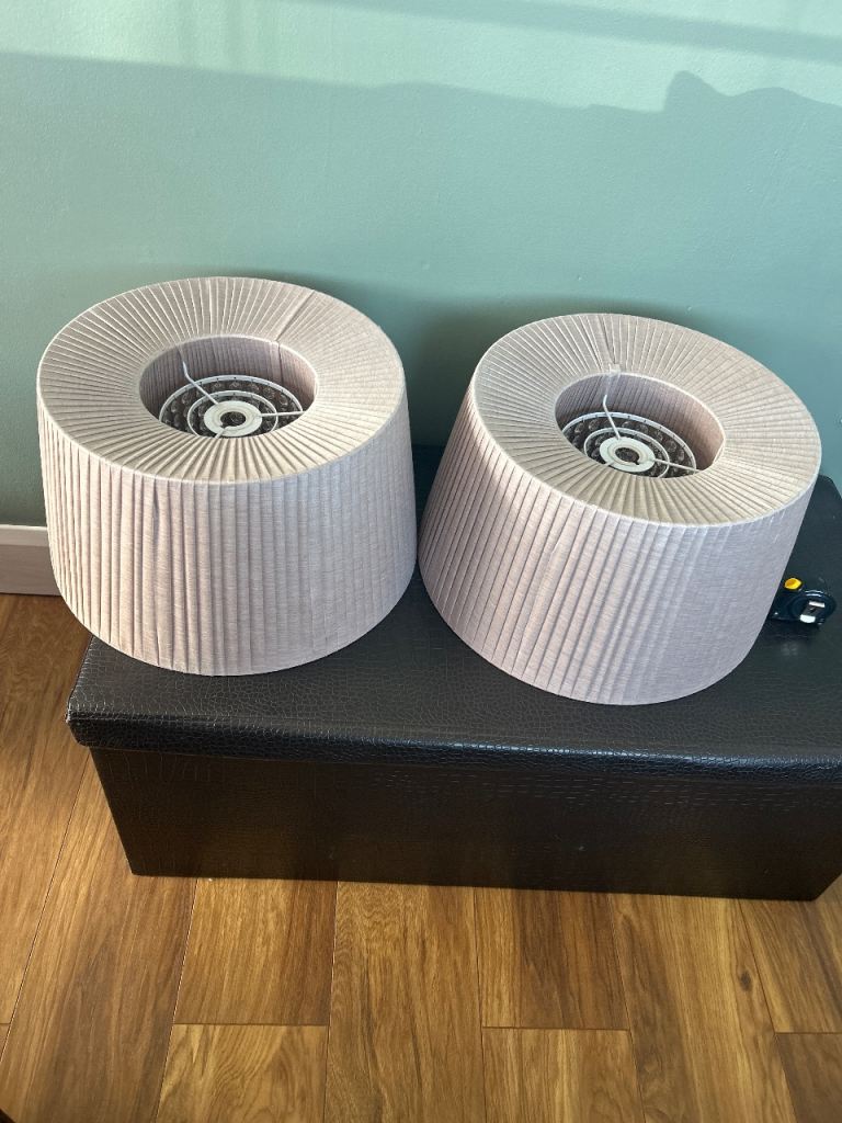 2x large lamp shades, as taken down. Text please.