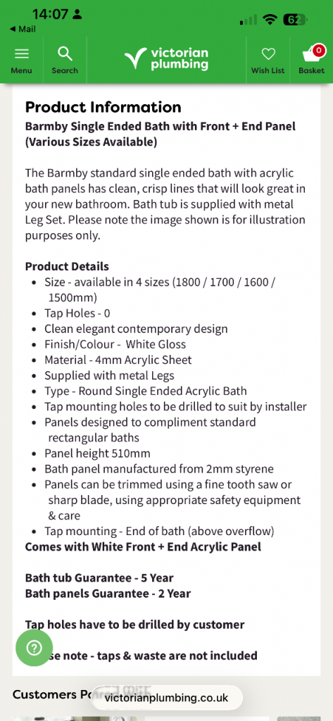 Brand new Victorian plumbing bath panels. Unused. Not even unwrapped.