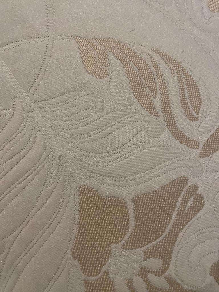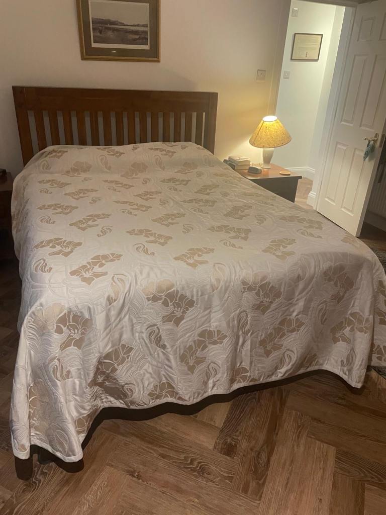 A hand made beautiful silk bedspread for sale . Will fit a double up to king bed. (270x240) It is cream with a gold pattern tuning through it.
