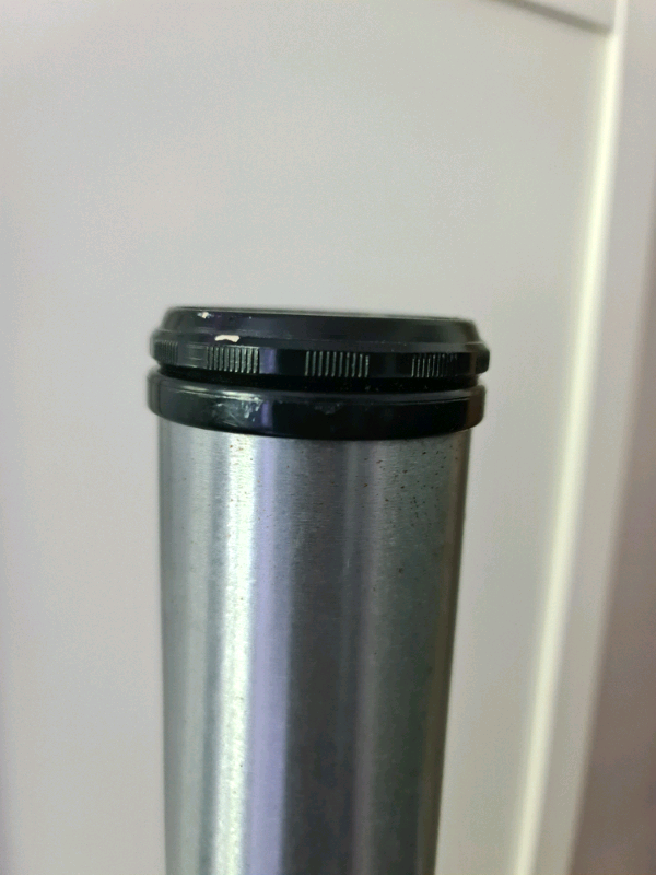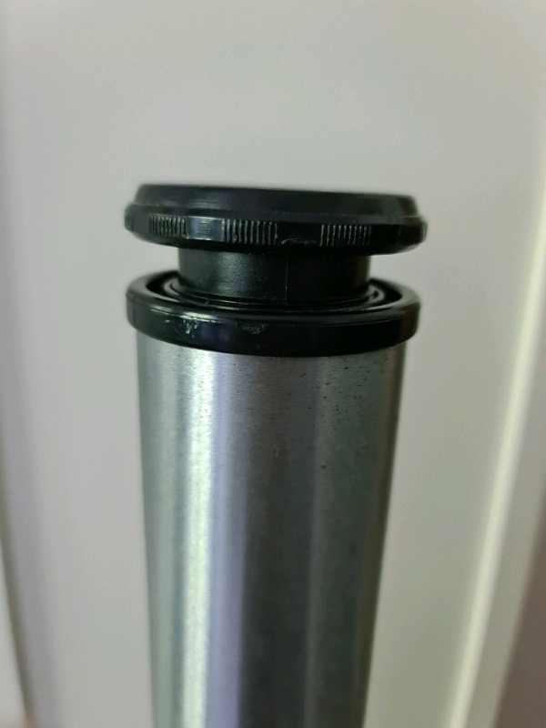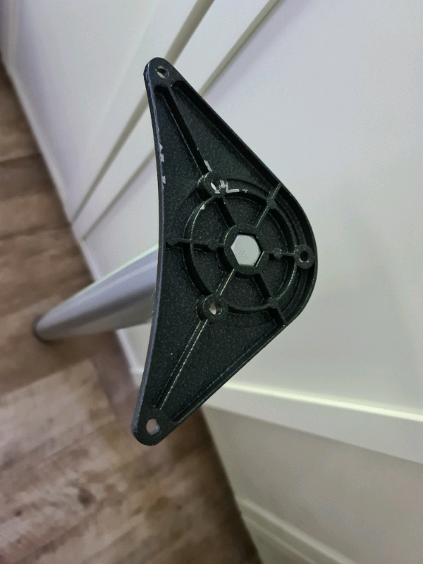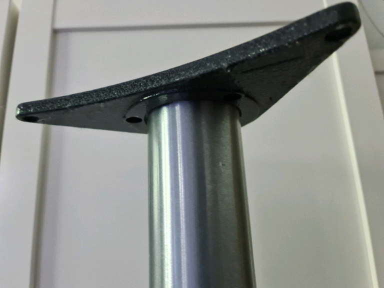 Height adjustable leg. Brushed chrome finish. Very strudy and strong.