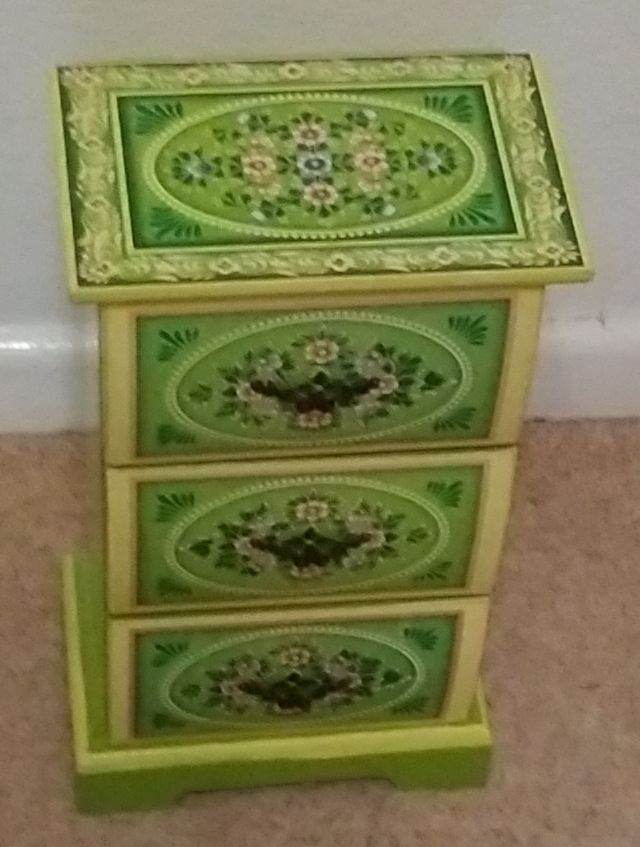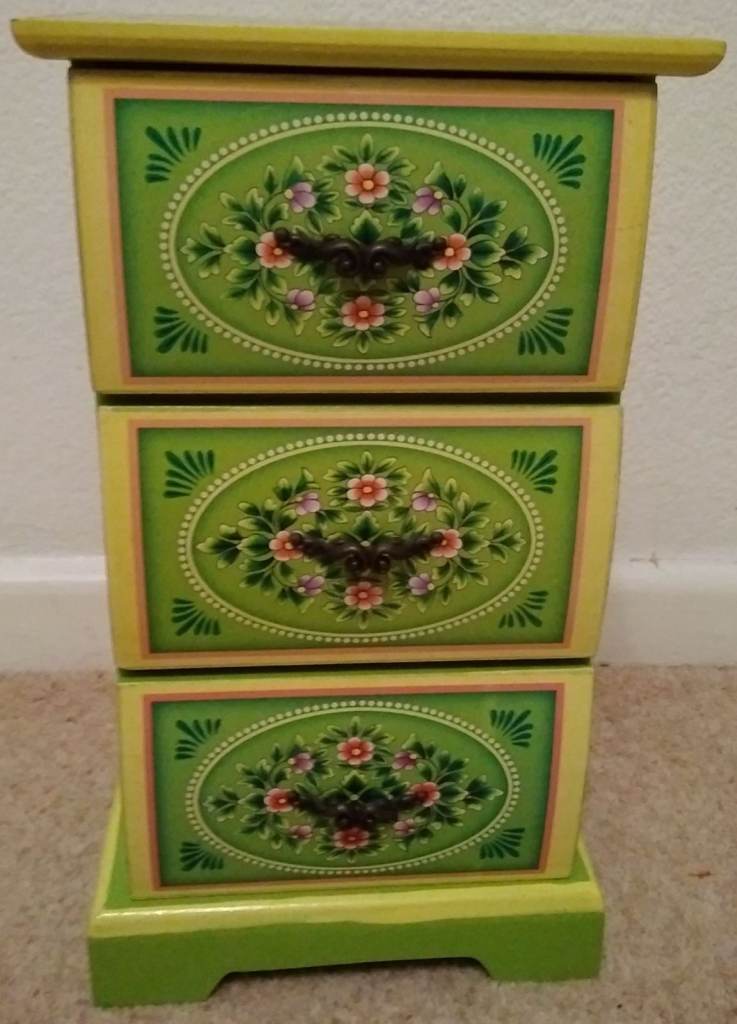 Small Trinket 3 Drawer Unit. Beautifully Decorated and Painted Wood.