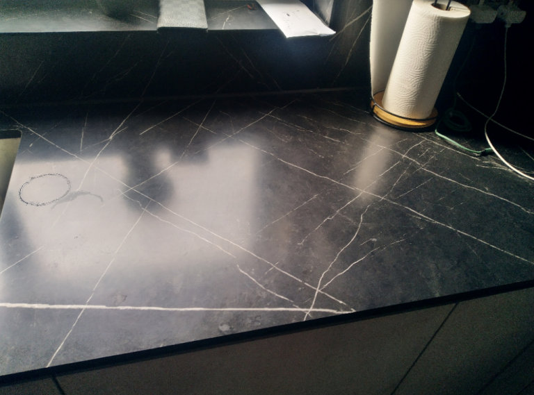 New solid laminate worktop, 2m, 650mm wide and 20mm thick. This product is called Aria Nero Grafite and is a superb quality item.