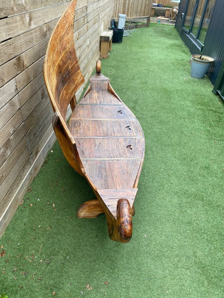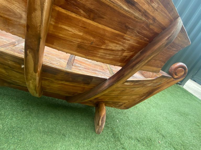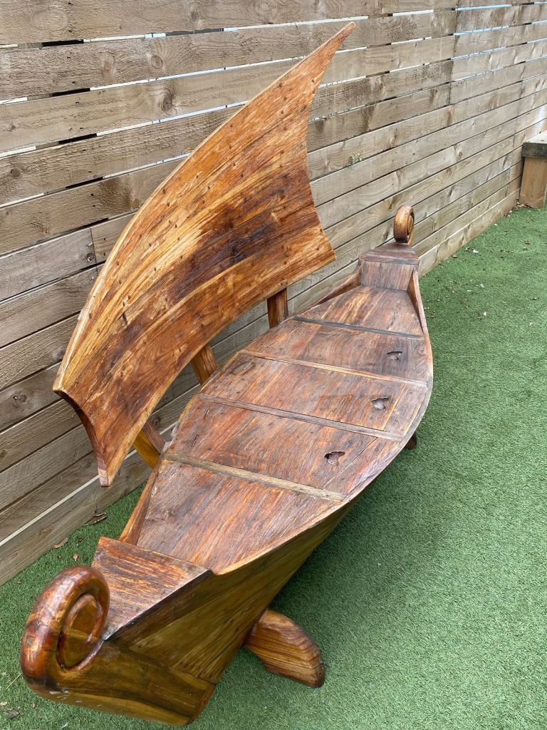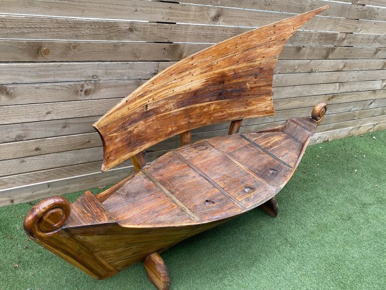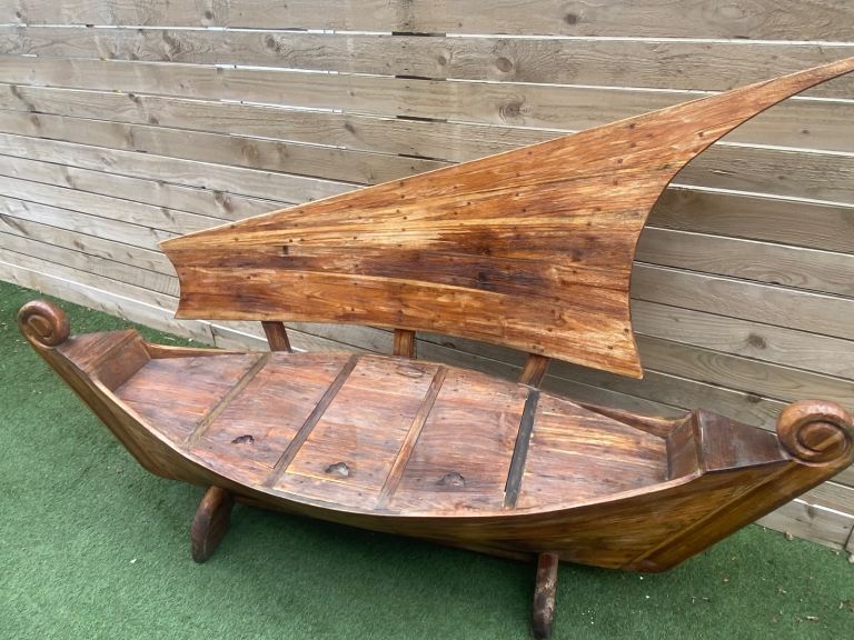 Rustic wooden Boat with sail storage Bench seat used condition long200cm w 58cm special ART local collecting only in GL2 Gloucester