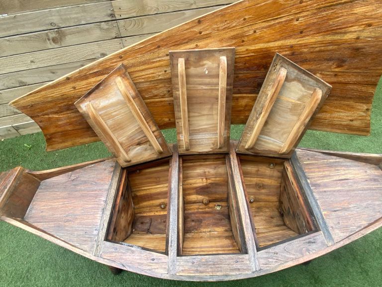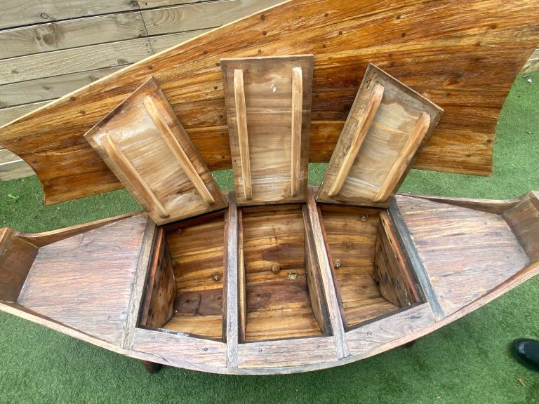 Posting for 3+ yearsSpecial ART rustic wooden Boat with sail storage Bench/seat