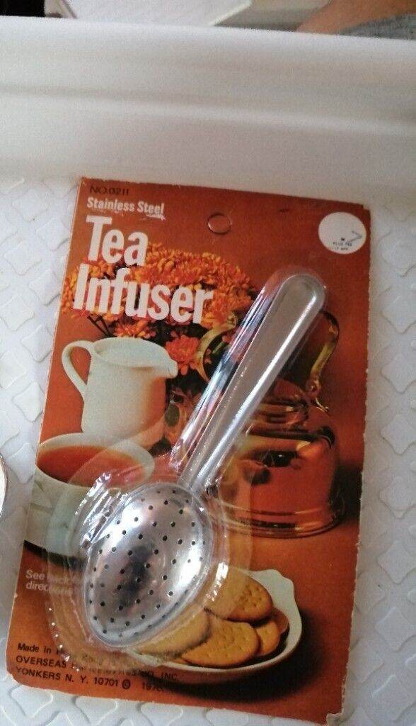 A stainless steel tea infuser in the original new packaging. Simply pop the loose tea into the infuser to the strength required and stir.