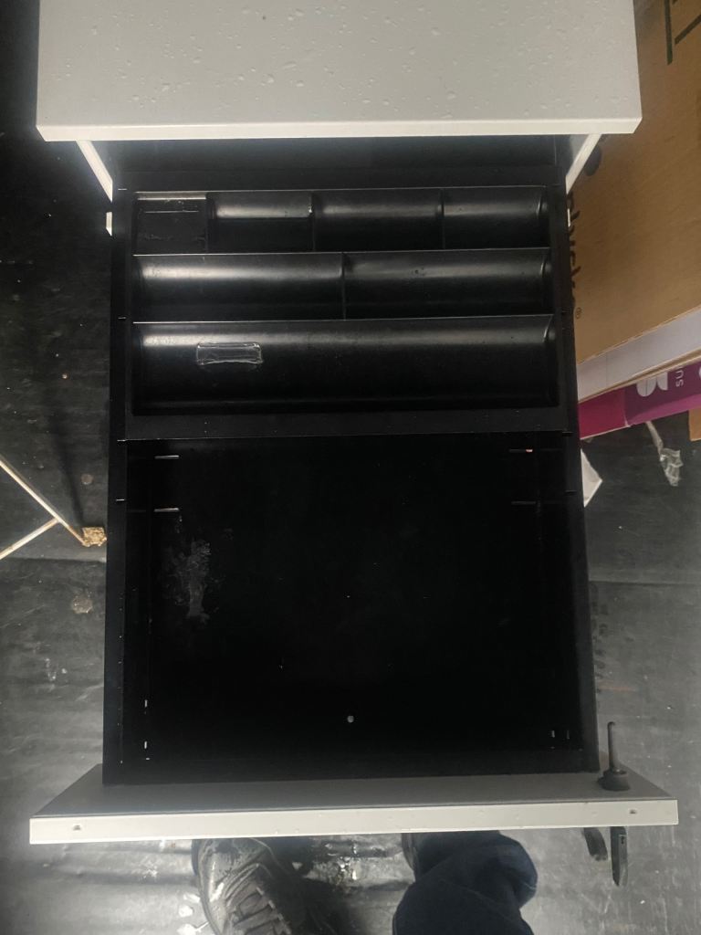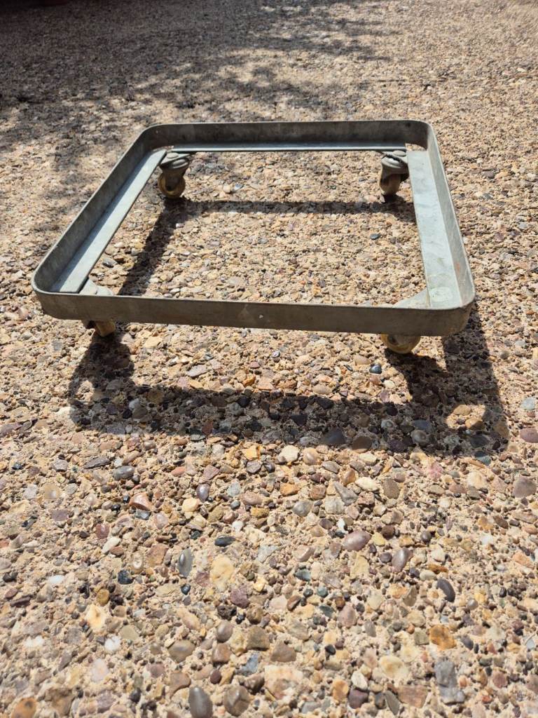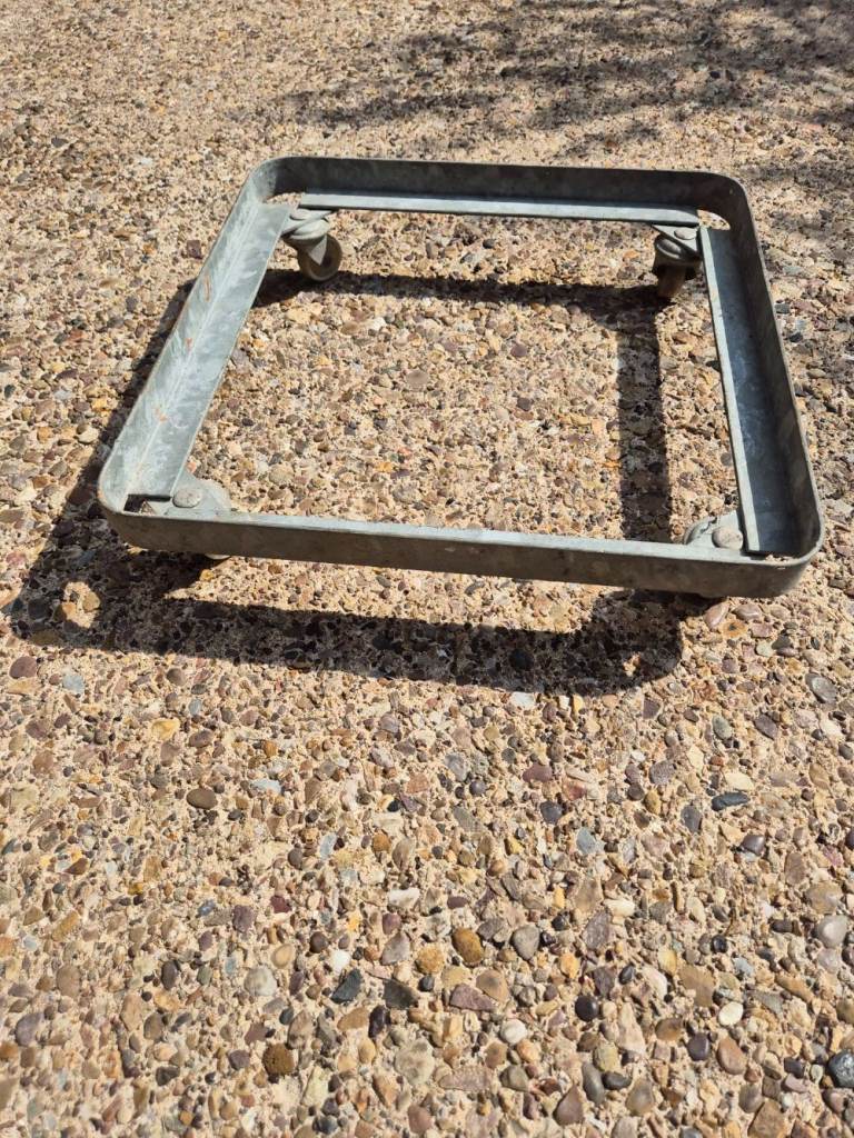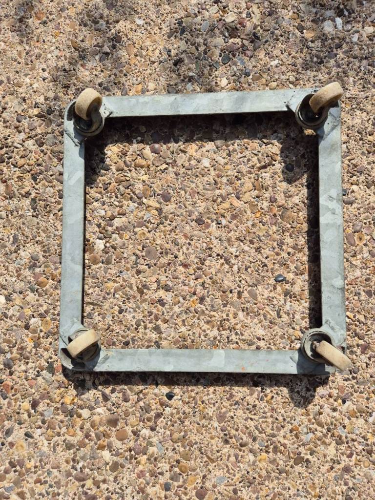 Strong metal frame with casters on - external dimensions are 42cm x 42cm x 9.5cm