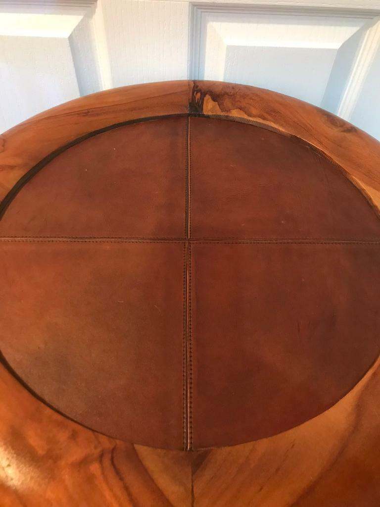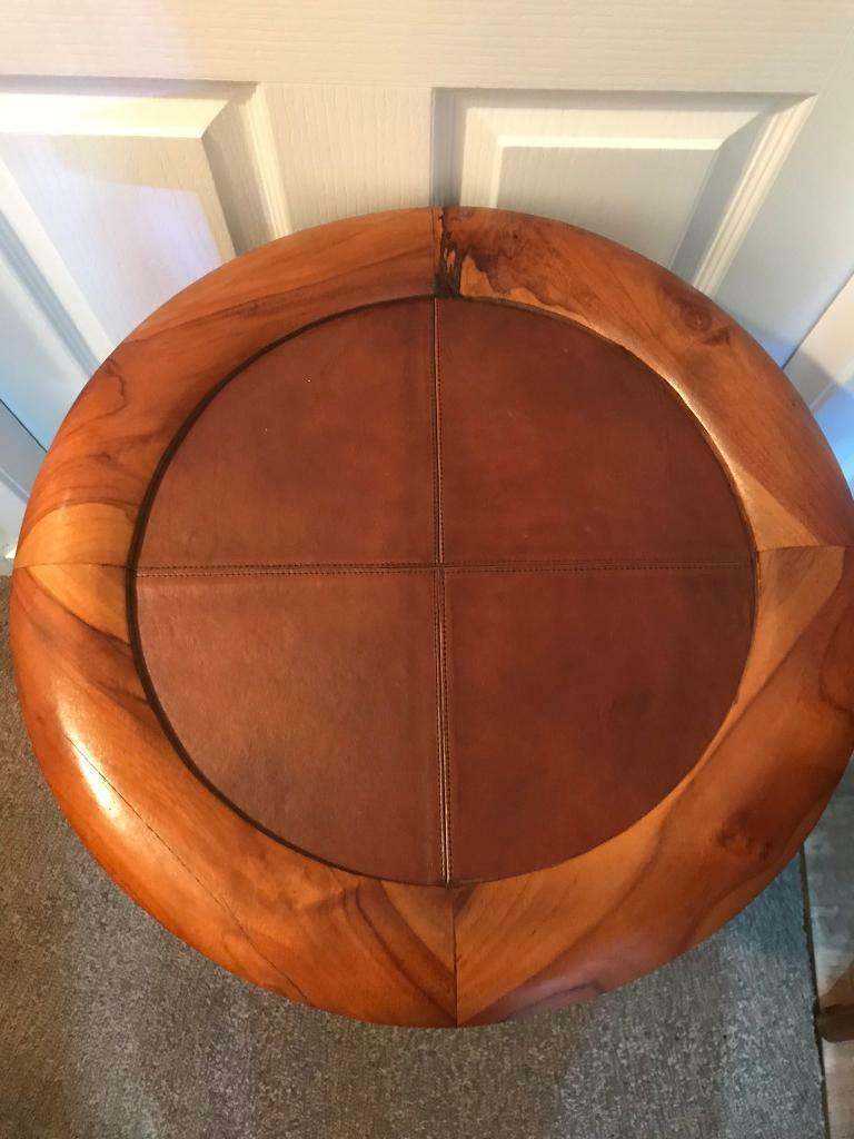 Stunning brand new tan leather and teak occasional/side/wine table.