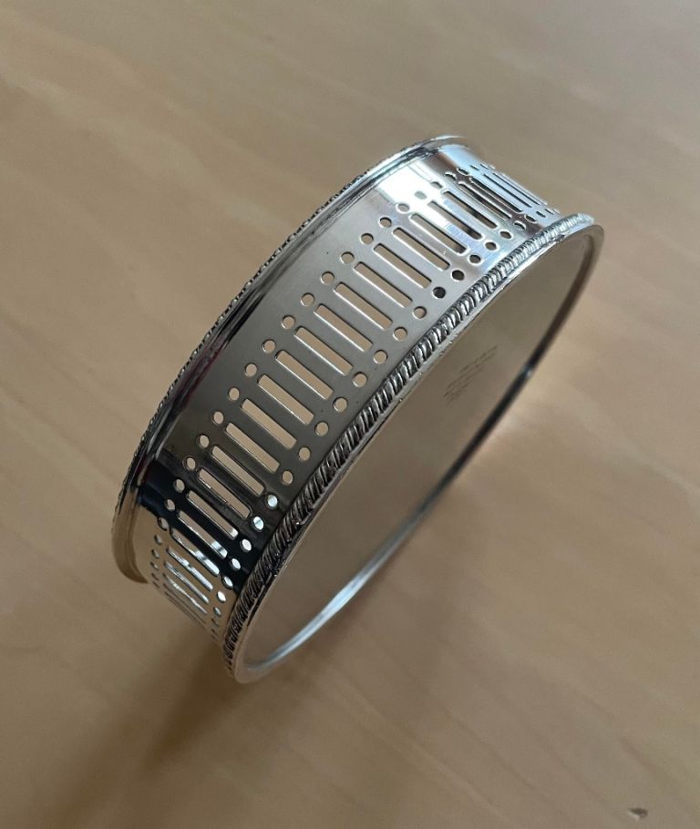 Stunning modern silver plated (on copper) decorative wine holder.with a decorative internal filigree base affording a classic design that will be relevant for years to come.