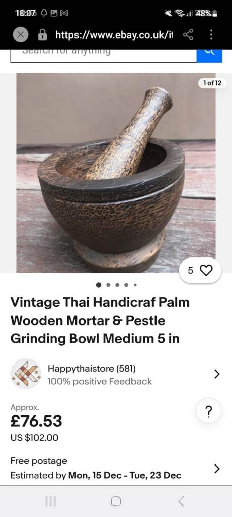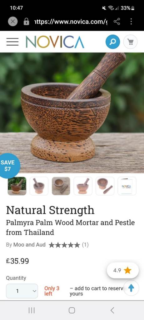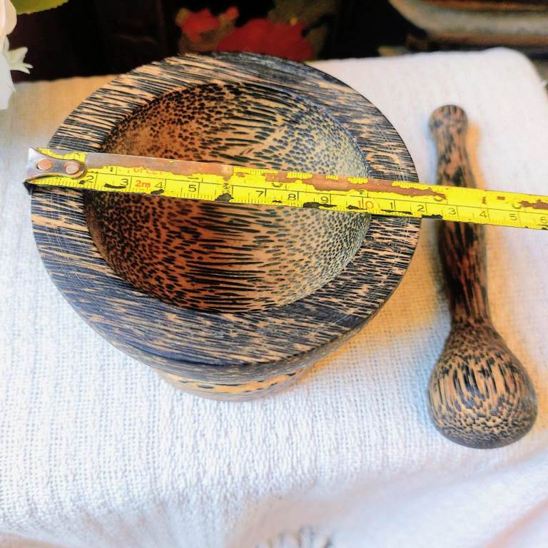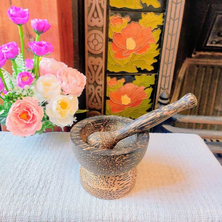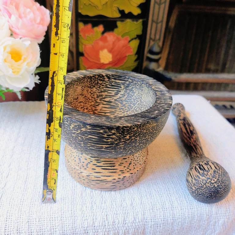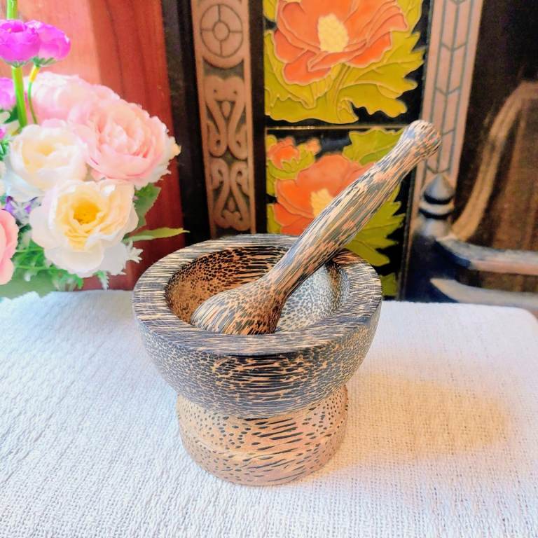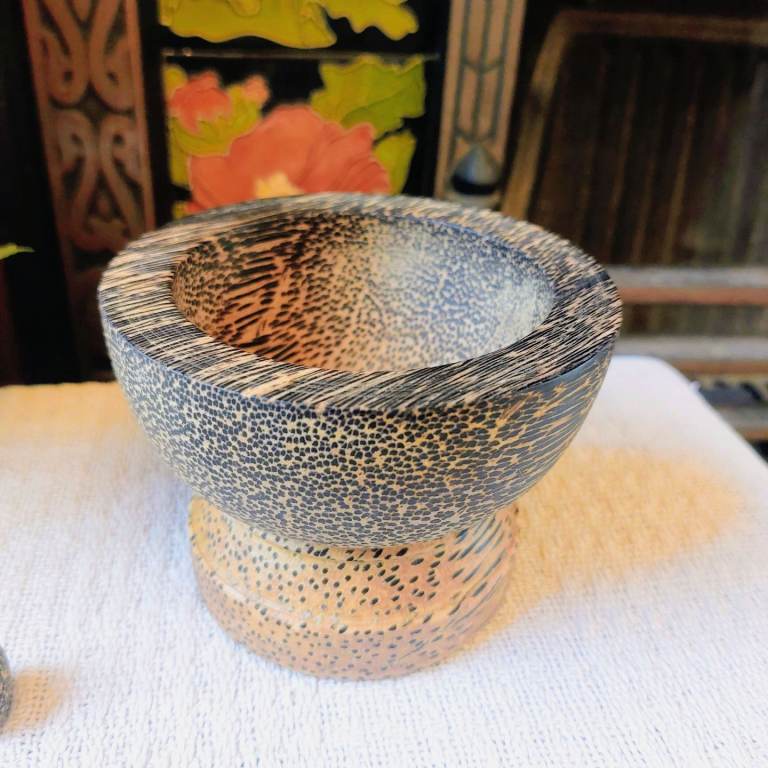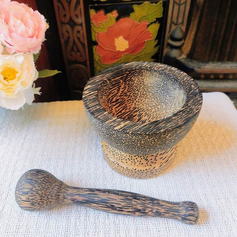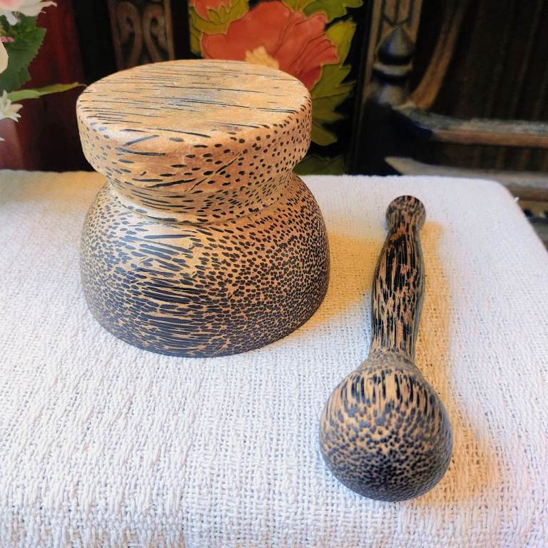 A gorgeous small Thailand palm wood pestle and mortar