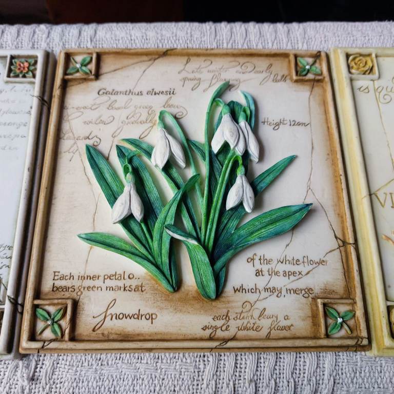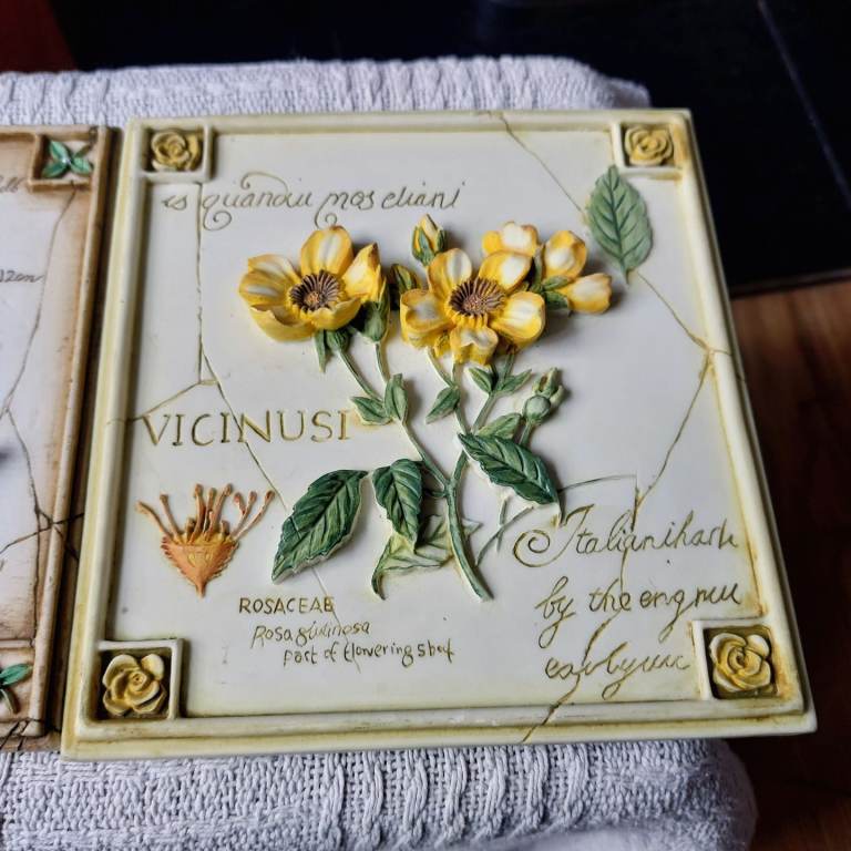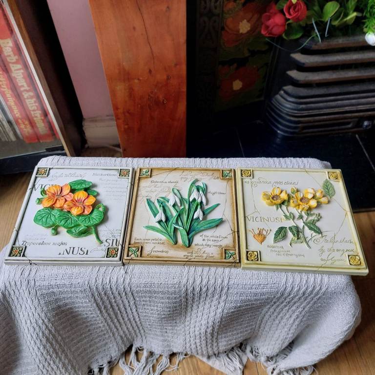 Three gorgeous vintage M&S rustic designed 3D hand painted flower wall plaques