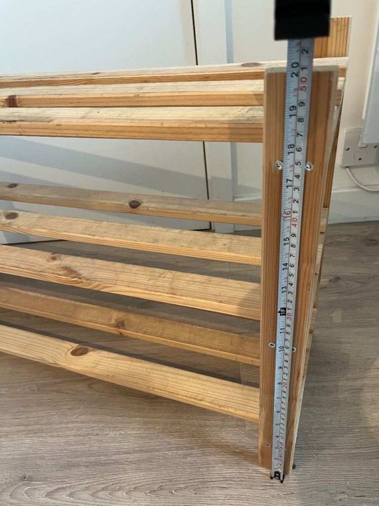 Timber shoe rack, 83cm wide, 50cm tall, 40cm depth. It has been used for a few years but good condition. Will be cleaned to have over. Collection from barking only.