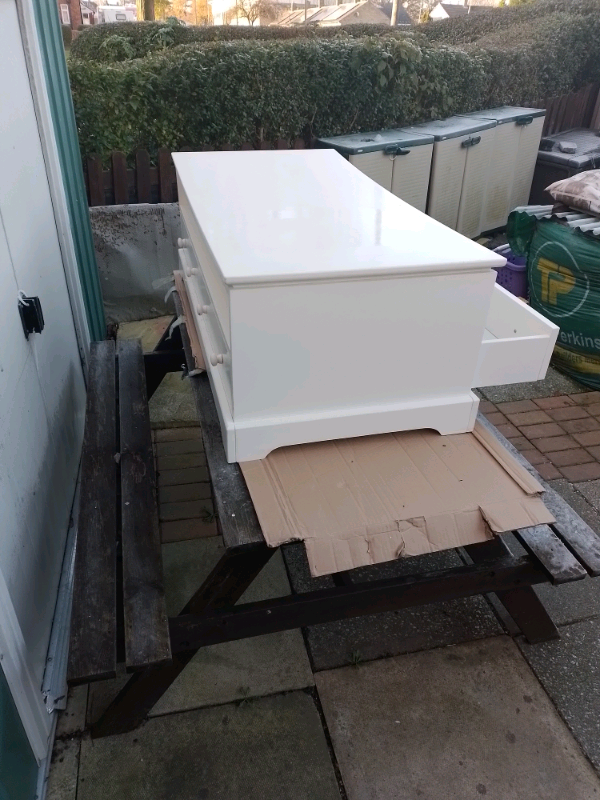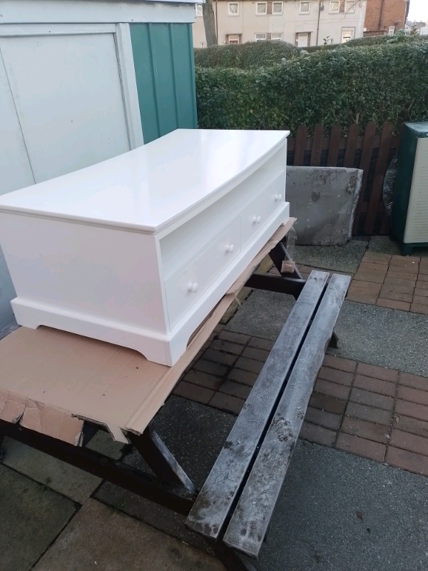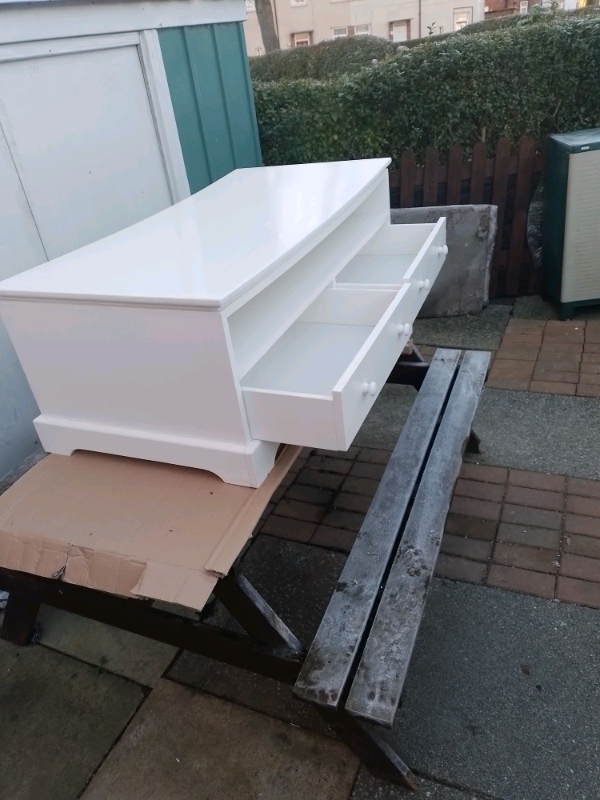 New TV unit white color H 43 x 120 x 58 cm with 2 drawers le39la Leicester