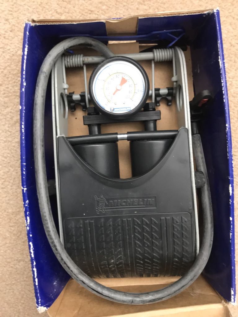 Michelin twin barrel footpump in box as per photo, collect from Church Langley