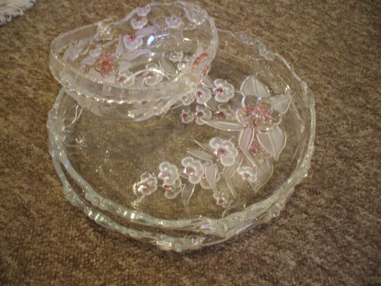 Posting for 12+ yearsTWO BEAUTIFUL LARGE GLASS DECORATIVE/FUNCTIONAL PLATES & SWEET DISH