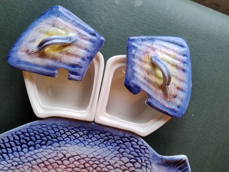 Posting for under a monthUnusual 4 piece fish platter and serving set
