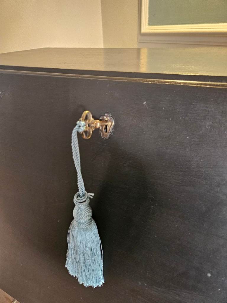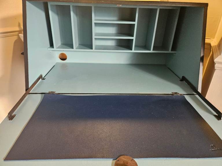 Lovely upcyled mat black bureau with blue interior