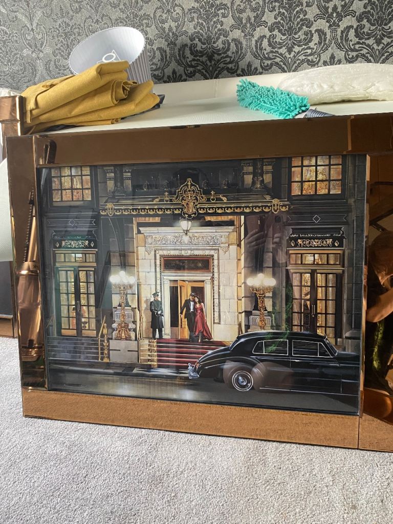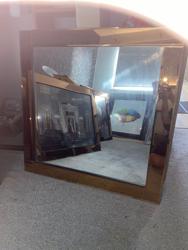 Hello I have for sale these pre-loved prints x 2 with matching mirror all with hanging clips on them, due to clear out, they are very classy, each print has an absolutely gorgeous bronze mirror frame, they were very expensive when I purchased them, they are large and statement pieces therefore big wall/s required, I have had them in my current roofspace for around 10 years now, they are in good condition with a couple of age related marks here and there, looking for £50 for all 3 to go to a new home !