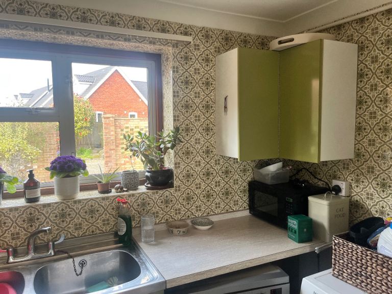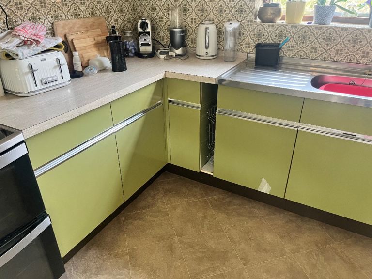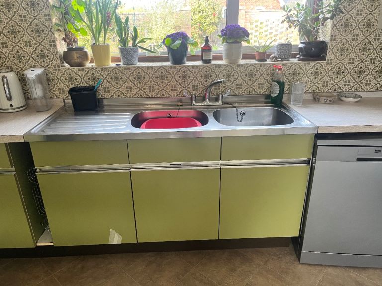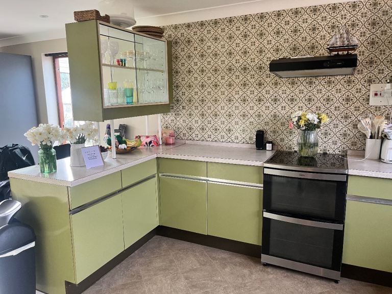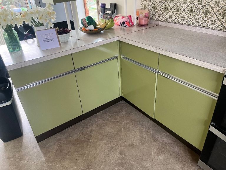 Original vintage English Rose fitted kitchen in classic green.