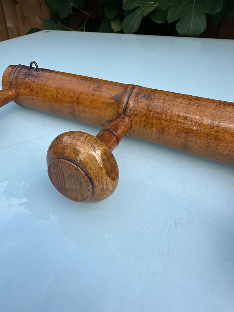I’m advised this is probably made from a Fruitwood and has been hand turned and varnished to resemble bamboo.