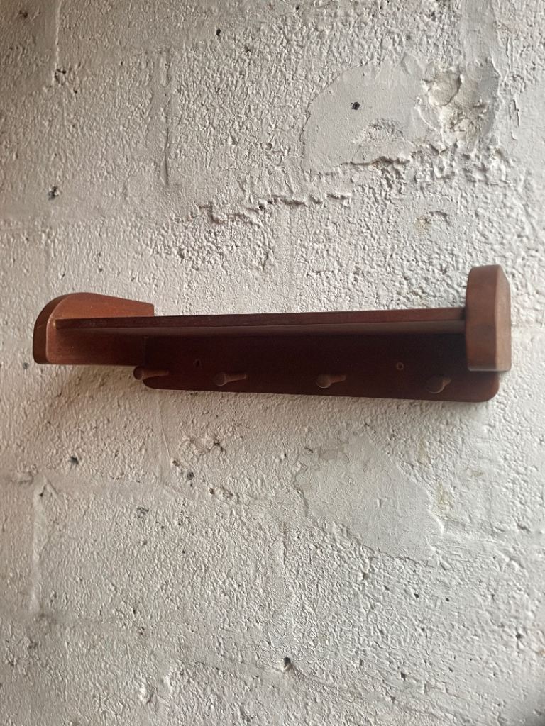 Mid century shelf and coat hooks.