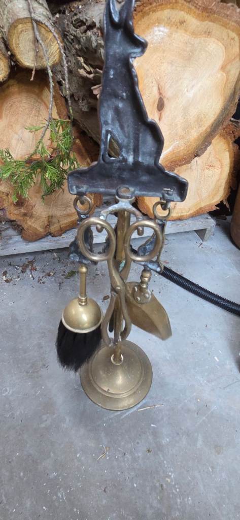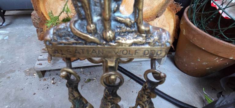 Vintage Solid Brass Alsatian Wolf Dog Fireside Companion Set