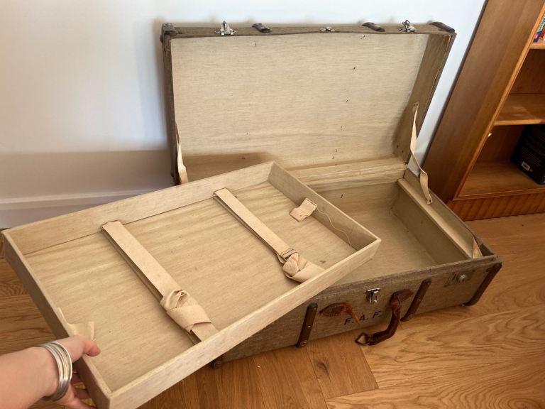 Very old travel trunk -a bit battered but full of character. Handle is broken.