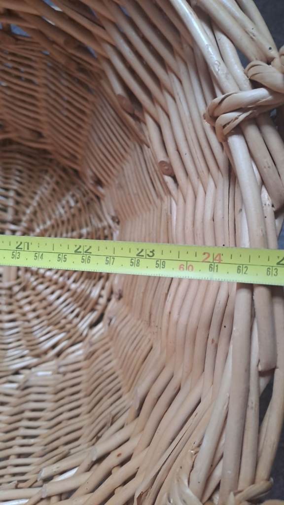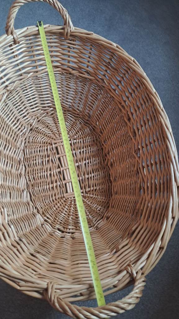 Large wicker basket for laundry.