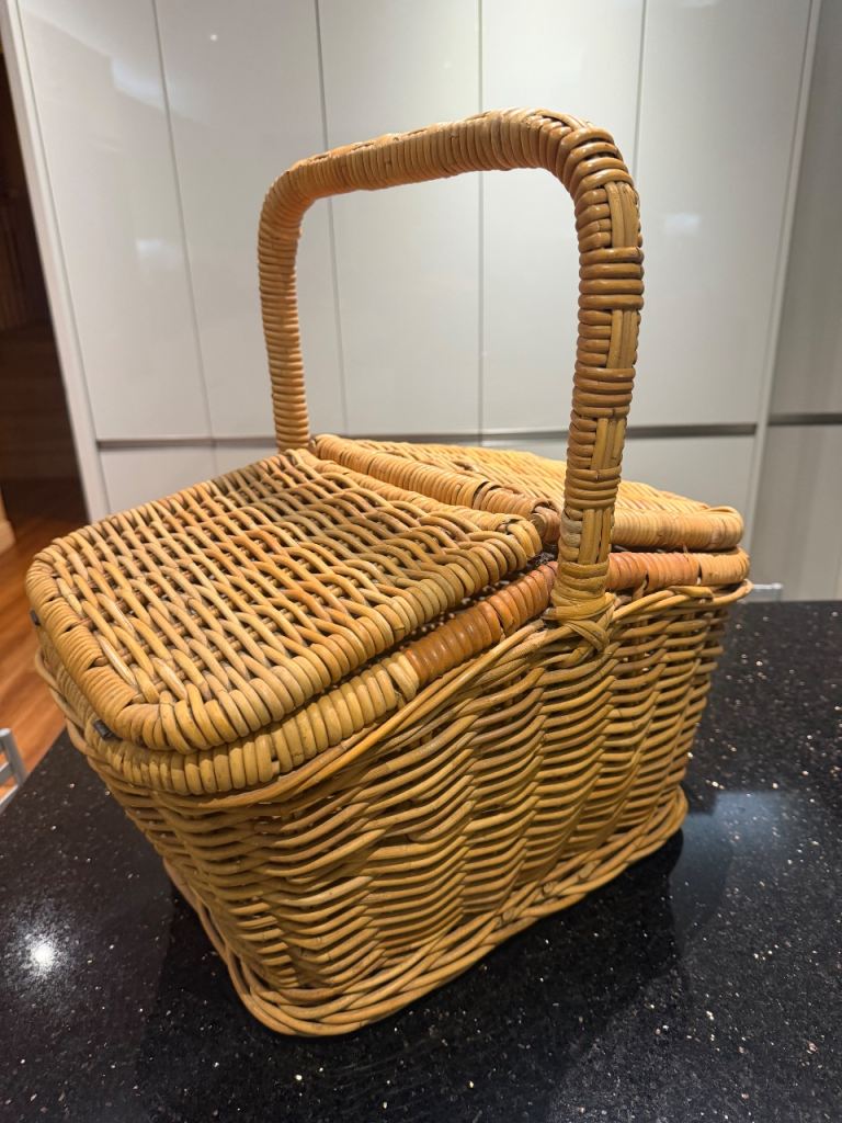 Vintage wicket basket with lid