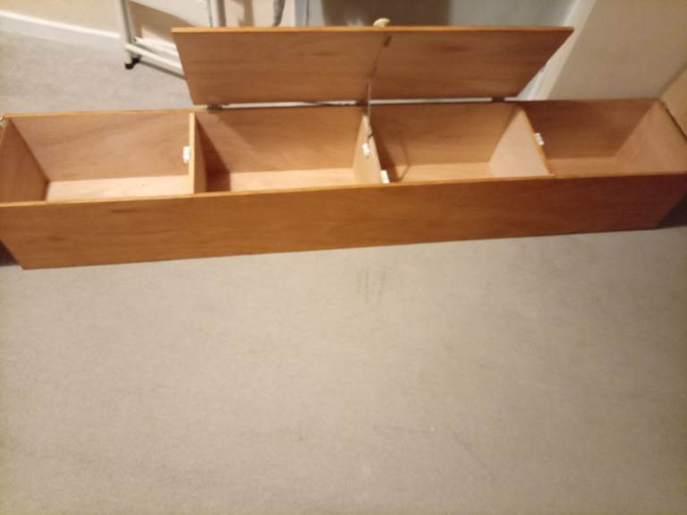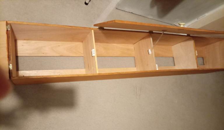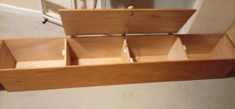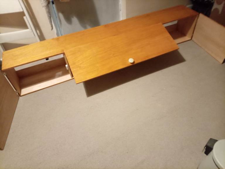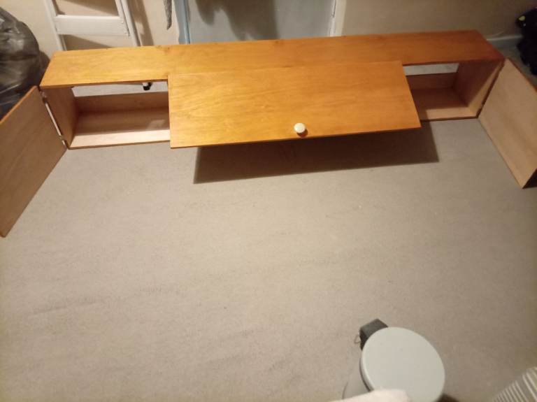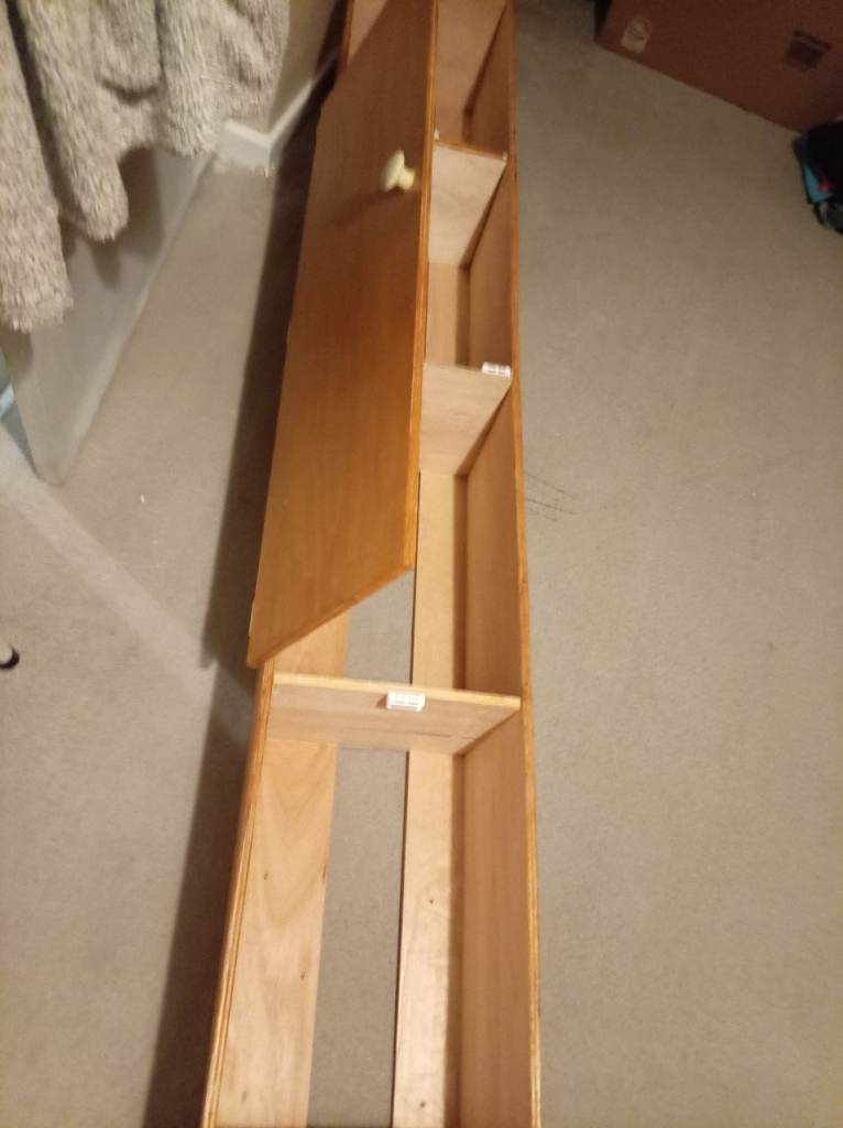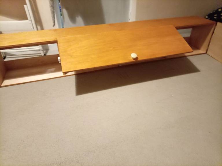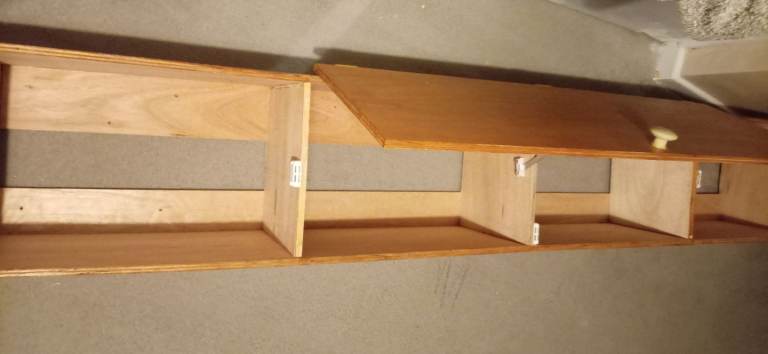 Wooden wall storage unit, this is new as I got 2 but only needed the one, they are great for smaller bedrooms with not a lot of space as they go on wall, ideal for clothes etc, loads of space in them, the length is 183cm, width 27cm and depth 30cm