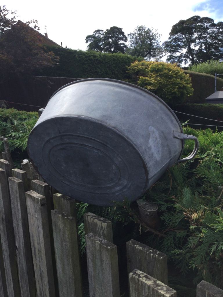 Galvanised wash tub. Good condition. Could be used for logs or as a planter. 60cm handle to handle, width 38cm, depth 21cm.