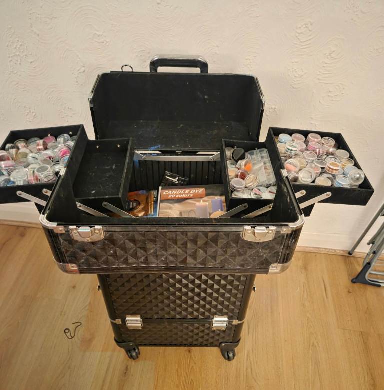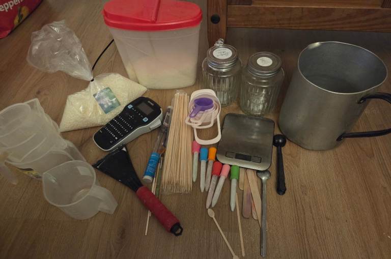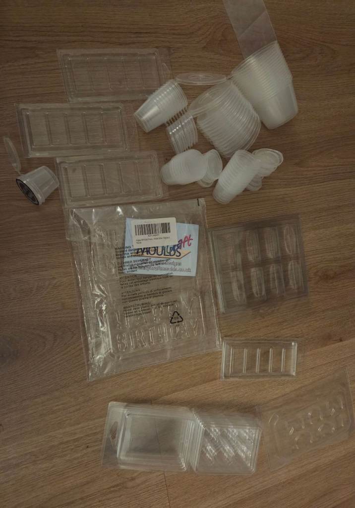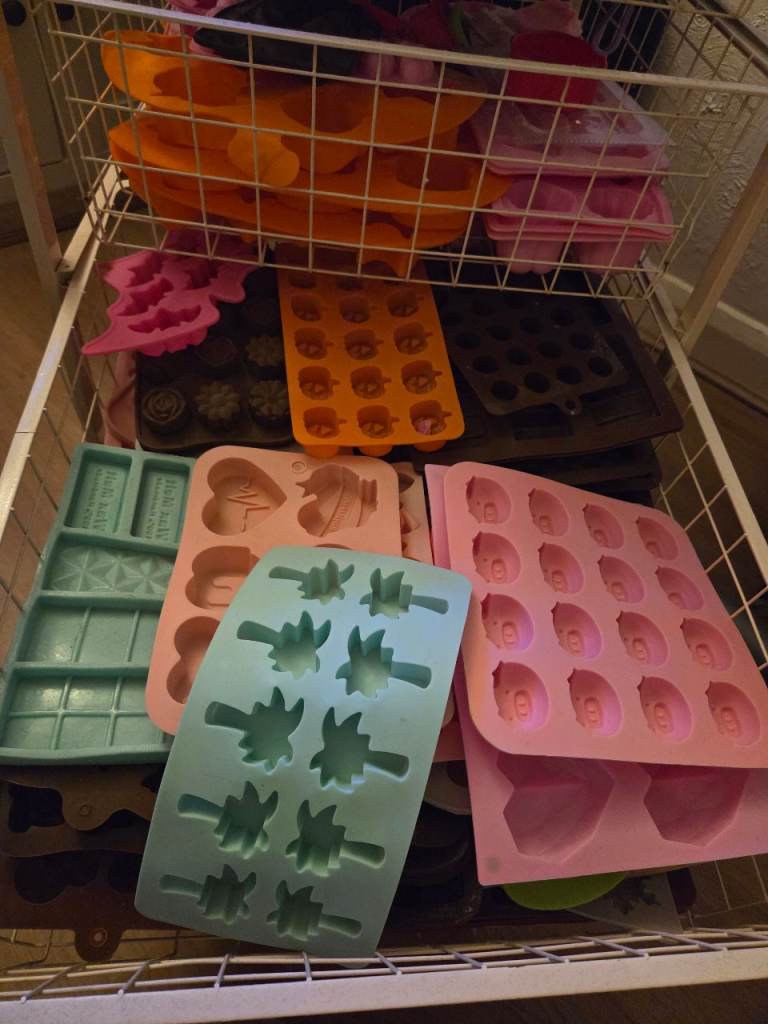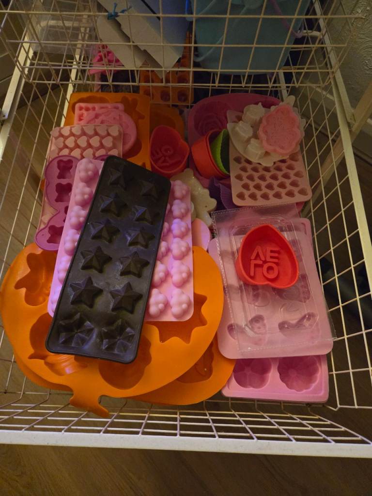 Literally everything you need to get started in making wax melts, loads of molds , colours , glitters. Everything pictured is included. Only reason for sale just dont have the time to use anymore so its just being wasted.
