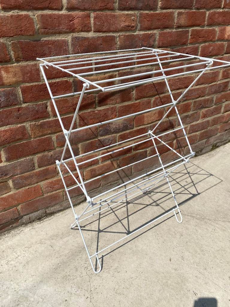 White Metal foldout laundry airer dryer indoor outdoor easy storage bedroom house