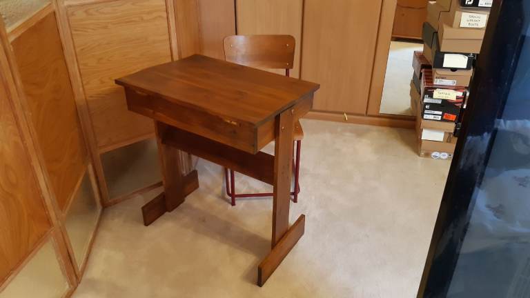 Wooden cd rack with plastic guides. Easy to shelve your cd collection. Takes lots!