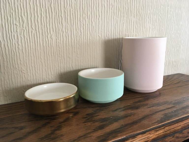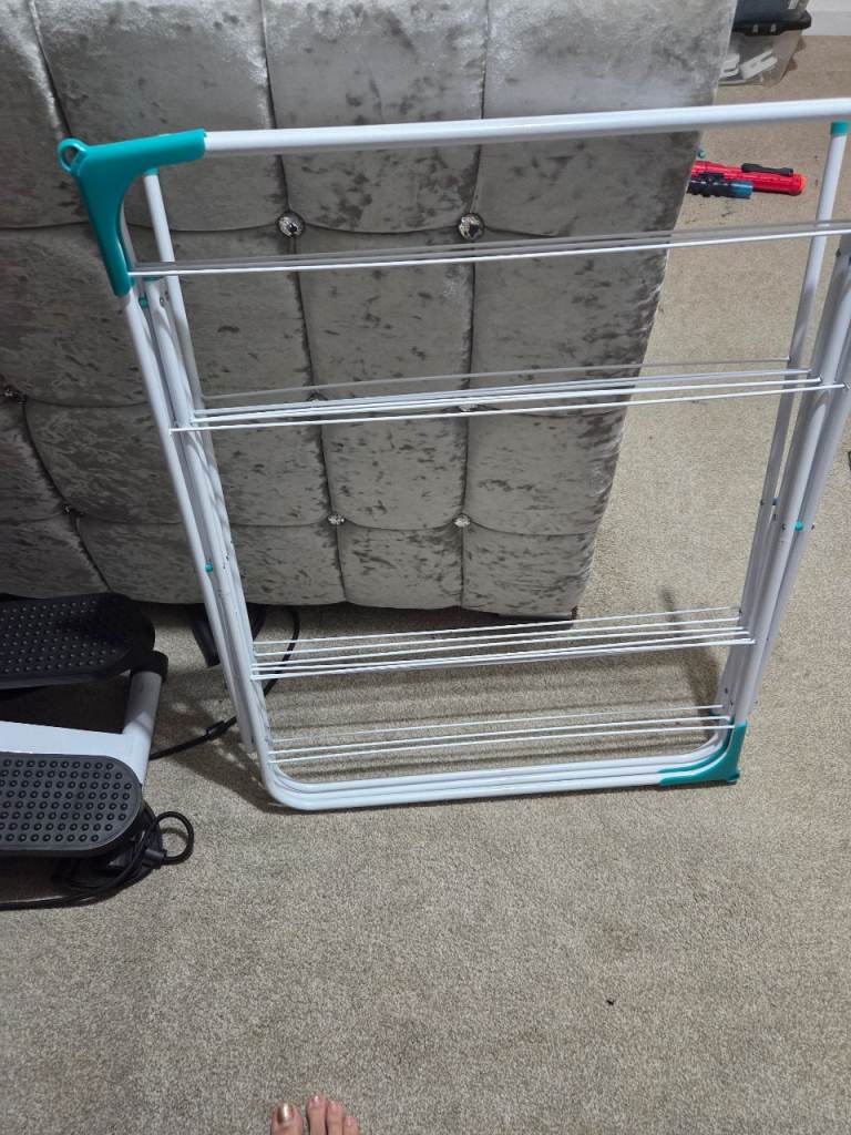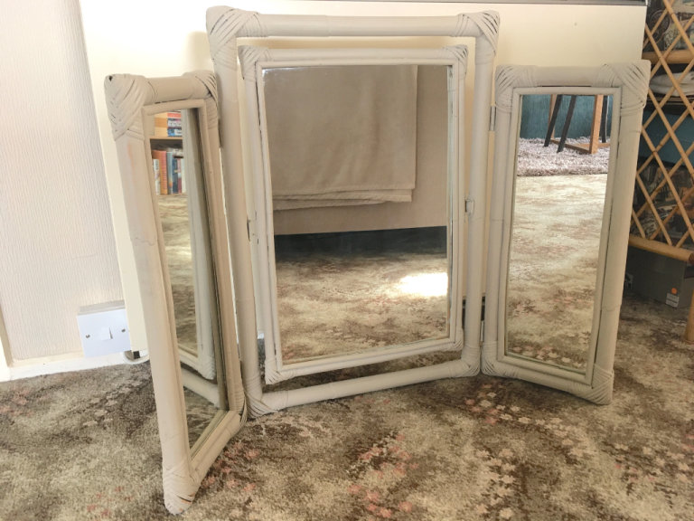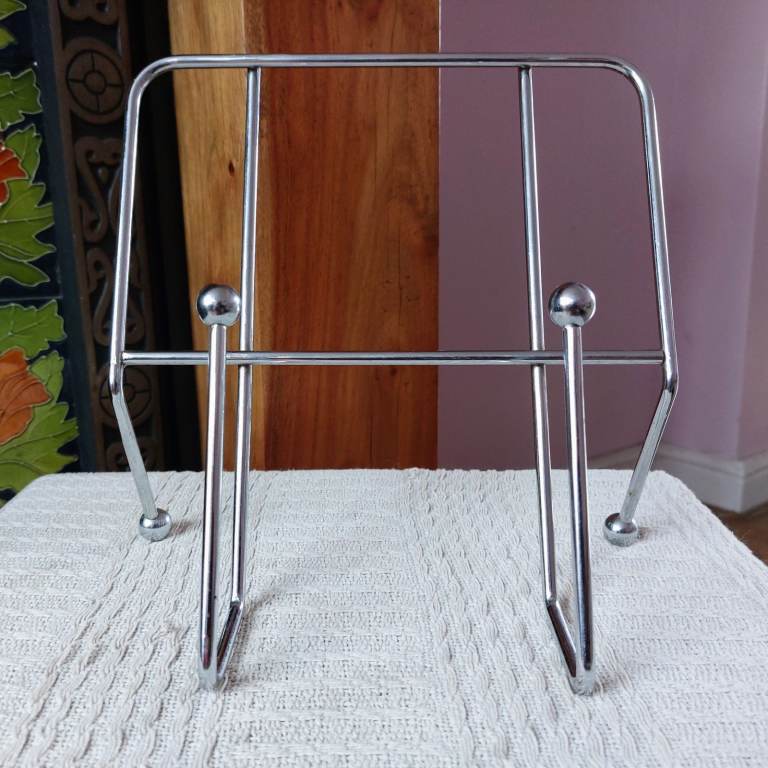 Lovely metal magazine rack. Painted white. Measurements are at the widest part