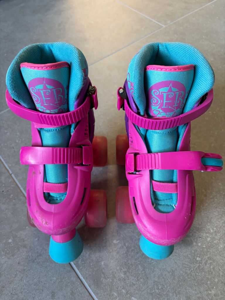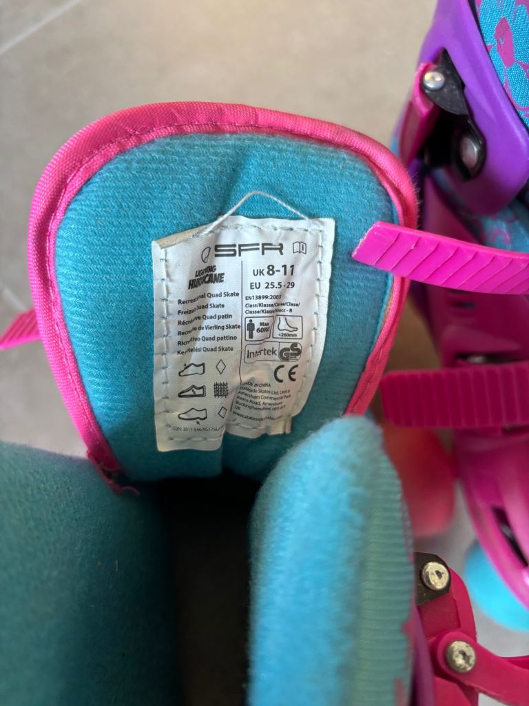 SFR Lightning Hurricane UK quad roller skates in pink/purple.
