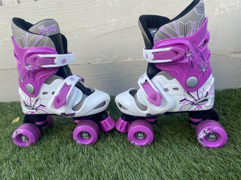Nearly new white & purple Ospray Roller Skates, adjustable size 10-12 (28-31)