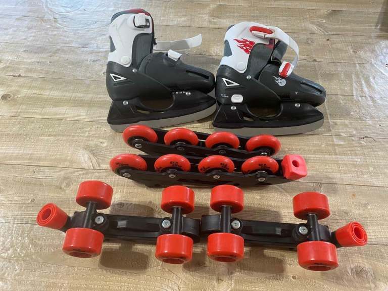 Interchangeable size adjustable 3 in one inline quad ice skates size 31 to 34 (New)