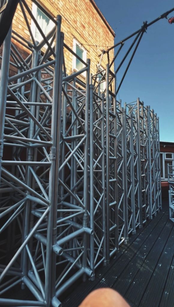 Milos M520 heavy duty aluminium box truss system originally designed as a permanent halo style rigging grid. Professionally maintained by Rigging Services and Secret Productions with full structural calculations, LOLER history and inspection records available.