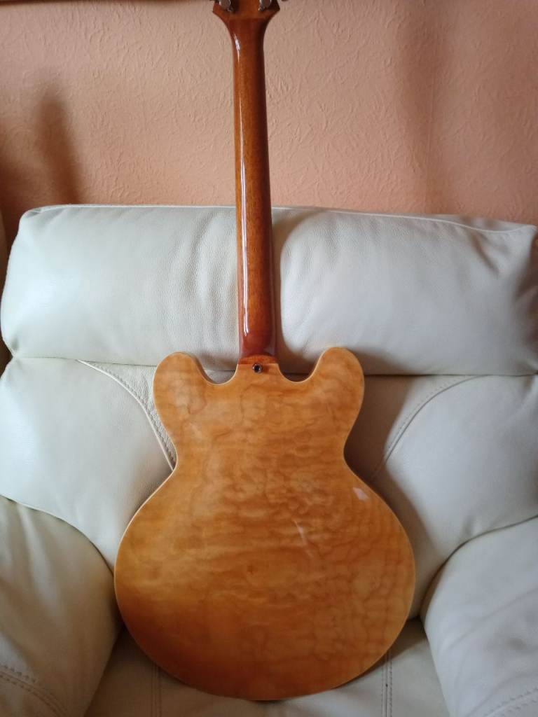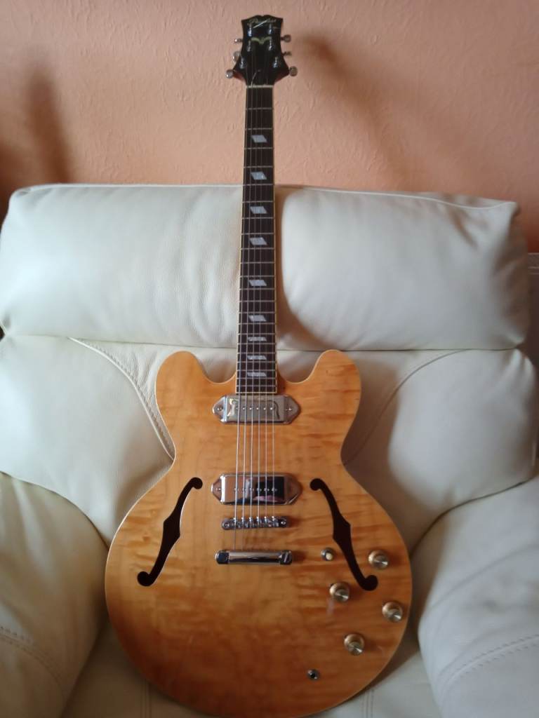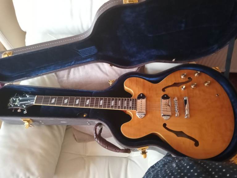 Semi acoustic with Peerless logo flight case, in natural finish with P90 pickups in excellent condition. No scratch plate. Beautiful guitar. £500 cash, NO offers, no trades, no delivery. Buyer to demo in southside. If this ad is still live ?, it's still for sale.