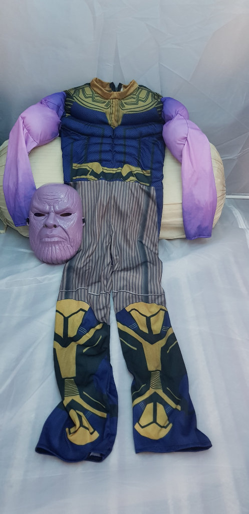 There are 4 super heroes/villains costumes for 7/8 year old child. Just worn once. Thanos, Venom, Thor and Spiderman costumes. Condition is as good as new.