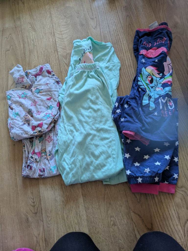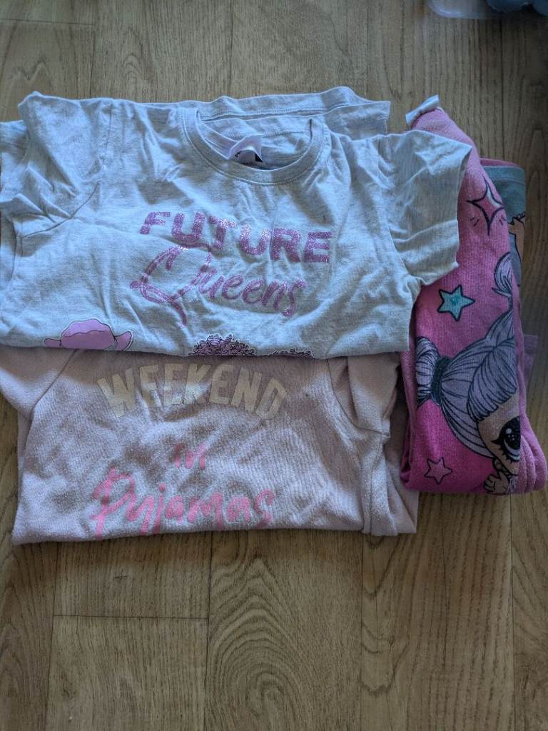 Size 7-8/8-9 PJs in girls includes 2 onesies (Frozen and a unicorn 🦄 one) 2 nighties, collection Rowley Regis. Washed and ready for collection. 5 for all. 1 bag full.
