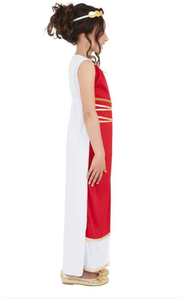Step back in time with this stunning Grecian Girl costume from Smiffy's. Perfect for fancy dress and history enthusiasts, this complete outfit features a beautiful red dress and a matching headpiece. The costume is designed for girls aged 7-9 and is sure to impress with its intricate details and vibrant colours.