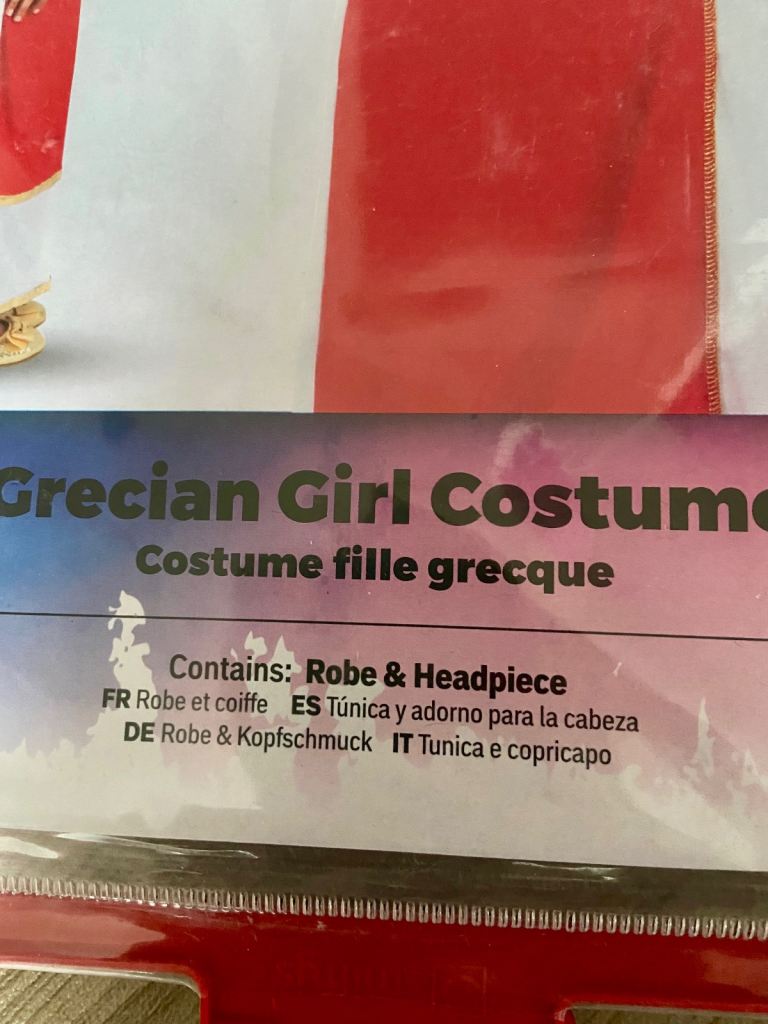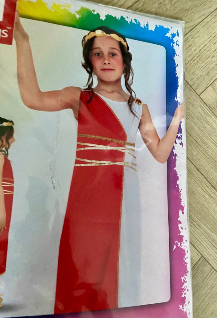 Grecian Girl Costume. Smiffy’s Fancy Dress. Robe/Headpiece. M 7-9 Years New.