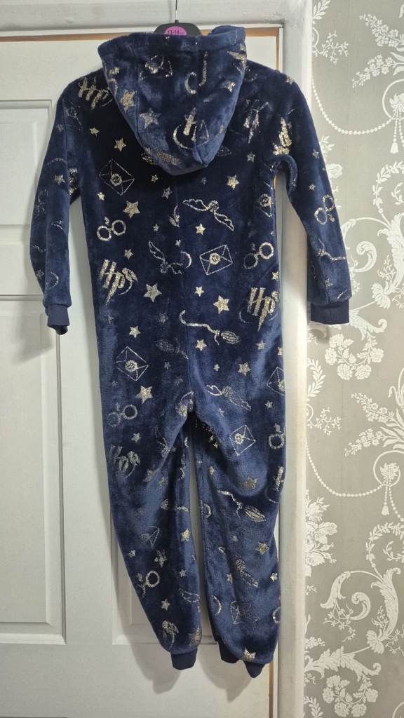 Hooded onsie. Like new as outgrew, age 7-8. Beautiful navy with gold print. Perfect for world book day.