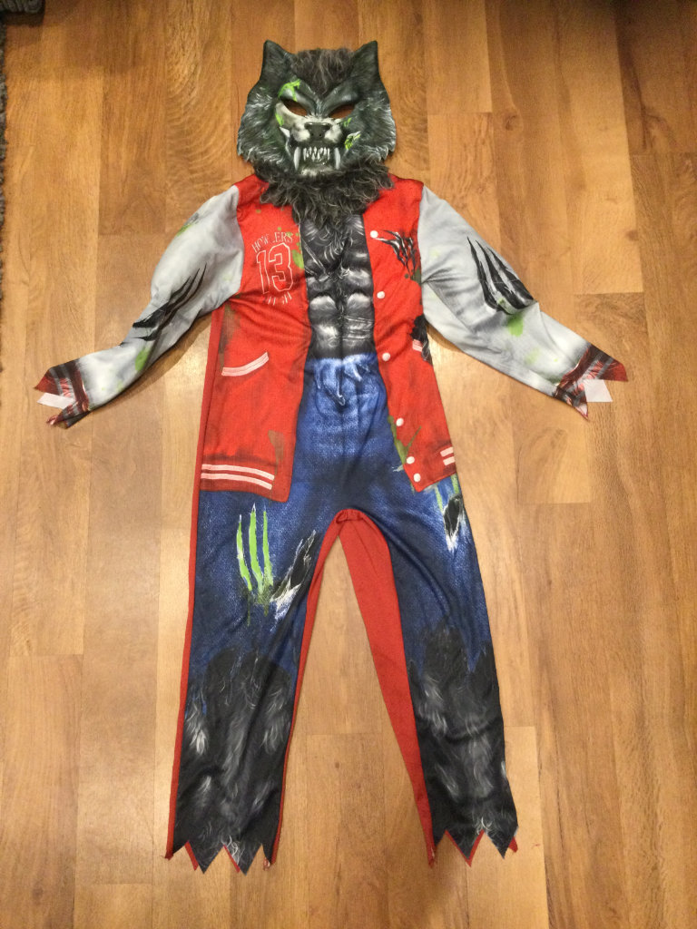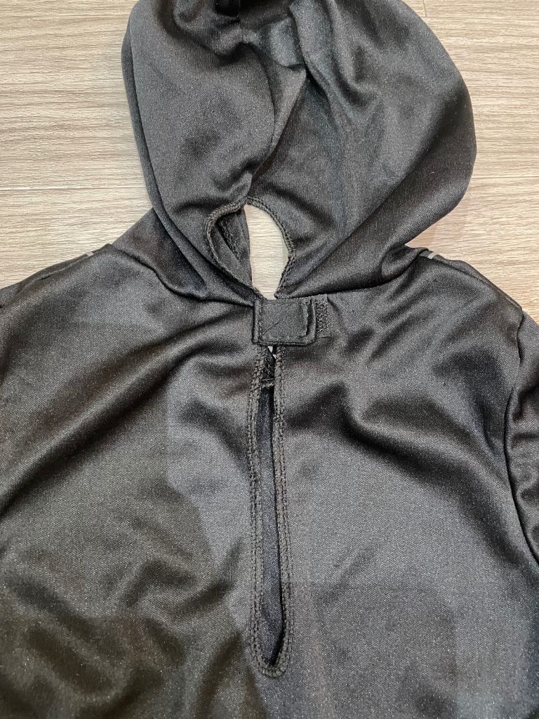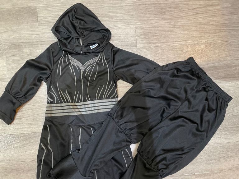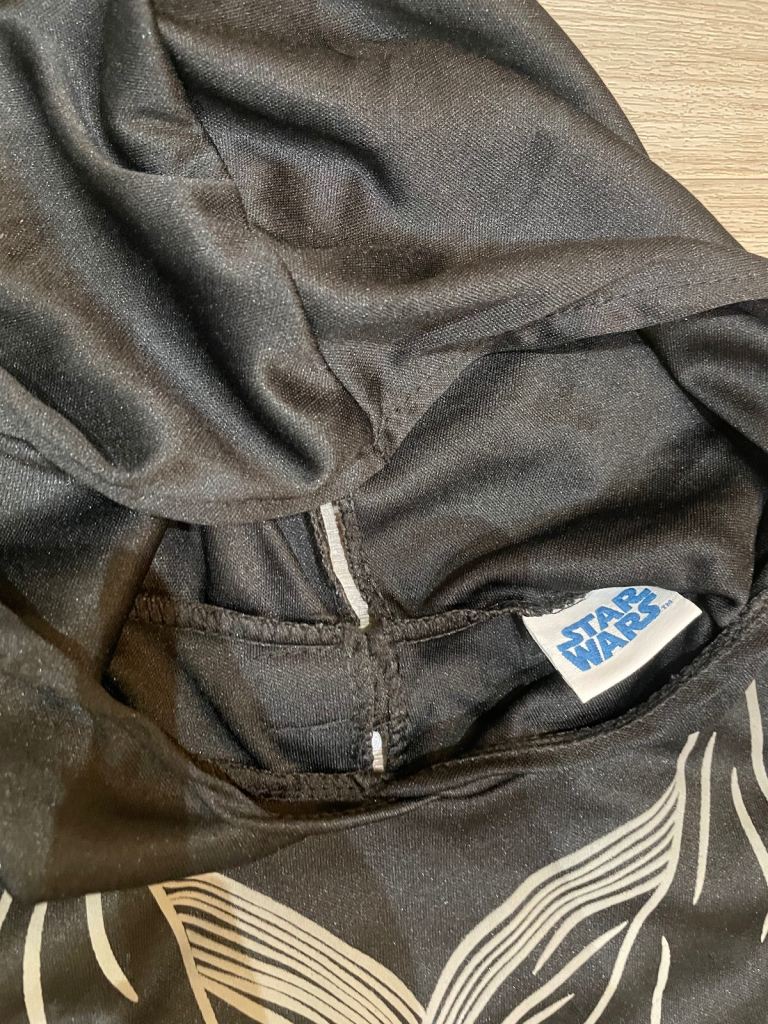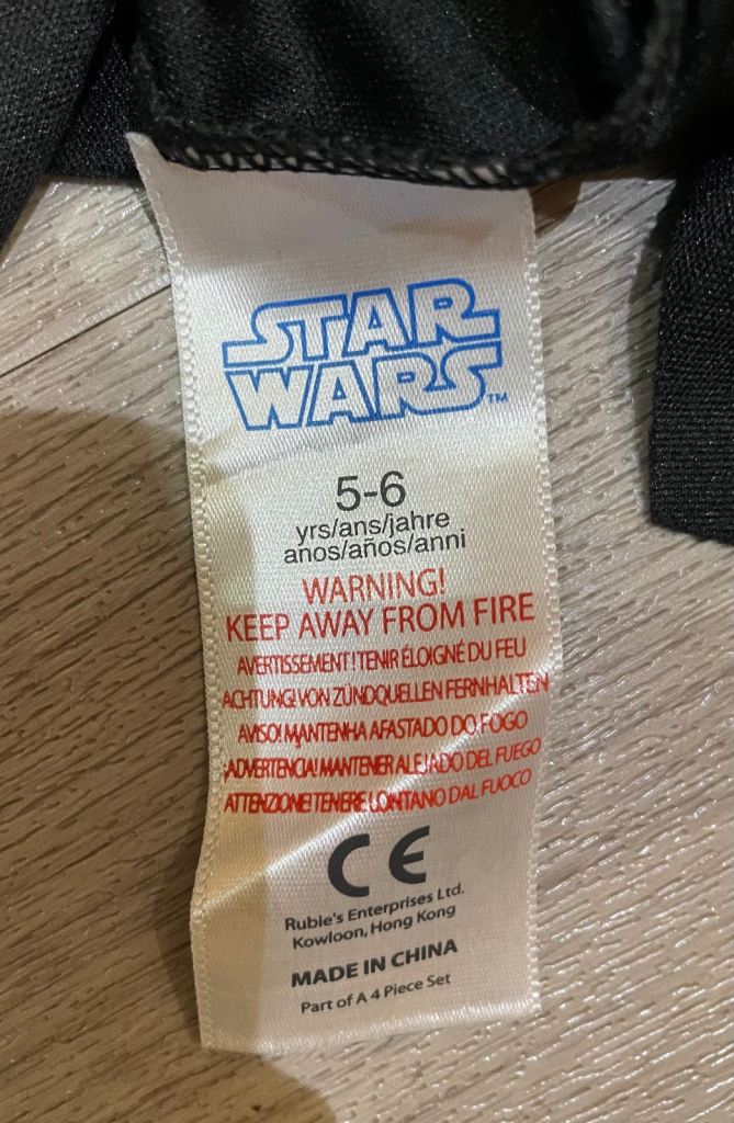 Kids/boys/girls fancy dress, Halloween or world book day. Darth Vader Star Wars costume. Aged 5-6. Two piece set. Top includes a hood, bottoms include over shoe covers. Velcro fastenings around back of neck/feet. Excellent condition.