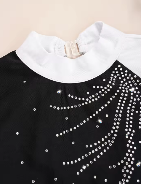 Kids Girls Mock Neck Long Sleeve Shiny Faux Diamonds Adorned Keyhole Back Dance Leotard.