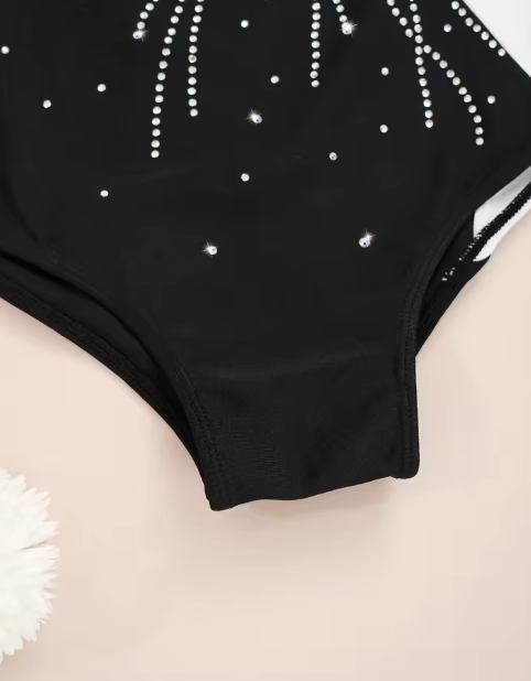 Features with faux diamonds adorned, keyhole back, ensures girls free movement.