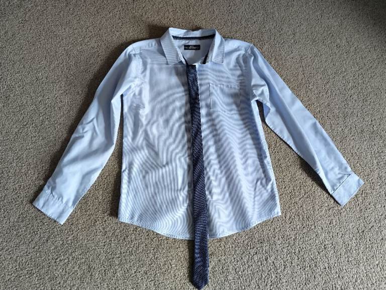 M&S blue suit with shirt and tie aged 10-11 years old. In very good condition, only worn once.