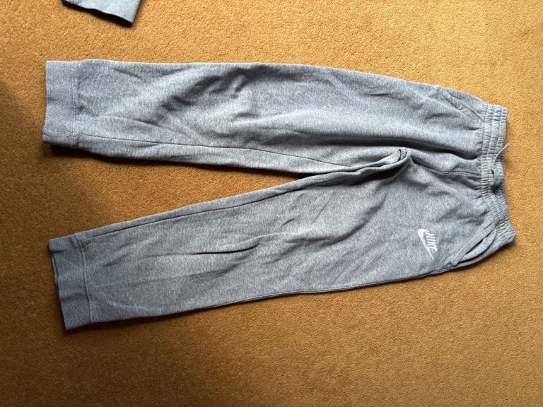 Two pairs of Nike joggers, both grey with draw strings to tighten if needed